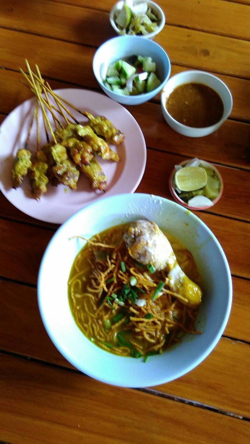 ก่อนไปเที่ยวต้องเติมพลัง พี่ที่น่ารักพาแวะกินอาหารเหนือที่ กรุงเทพหากินยาก คือข้าวซอย ร้านนี้มีทั้งข้าวซอย เนื้อ ไก่ หมู ลูกชิ้น มีหมูสะเต๊ไม้เบ้อเริ่ม พี่สั่งขนมปังหน้าหมู เค้าทำมาเป็นกัอนเลย ขนมปังกรอบดีไม่อมน้ำมัน ข้าวซอยรสชาติดี ร้านนี้คนมากินเยอะมาก มีน้ำฝรั่งคั้นขายด้วยดูเพิ่มเติม