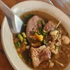 31% ของรีวิวบอกว่าร้านนี้เหมาะกับ ประหยัด!รอบก่อน มาด้วยความหิว จึงไม่ได้อ่านรีวิวว่าร้านนี้เด็ด เมนูอะไร รอบนี้ตั้งใจเป็นพิเศษ ต้องสั่งเกาเหลาต้มยำให้ได้ เกาเหลาต้มยำร้านนี้เป็นการใช้ถั่วงอกและ ผักกวางตุ้ง อมน้ำ ต้มยำ มาค่อนข้างโอเค แต่ยังไม่เผ็ดมากจึงเพิ่มพริกไปสักนิดนึง อร่อยขึ้นเยอะเลย สำหรับคนที่ชอบทานเผ็ด มีทั้งหมู ชิ้นหมูสับ และเครื่องใน อีกเมนู กับกระเพรา หมูชิ้นไข่ดาว ต้องบอกว่าร้านนี้ เคียวไข่ดาวได้อร่อยมาก ขอบไข่ดาวกรอบหอมกร...อ่านต่อ