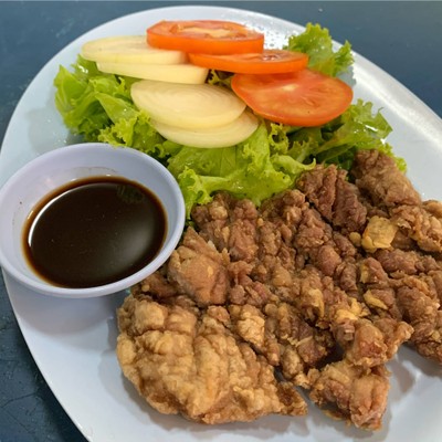 อาหารจีนไทยสไตล์กุ๊กช็อปในบรรยากาศย้อนยุค ในเมนูมีกรอบอาหารแนะนำ สั่งตามนั้นได้เลยครับ วันนี้เรามีเมนู สลัดเนื้อสัน เนื้อด้านนอกกรอบพอประมาณ น้ำสลัดอร่อย แต่เนื้อด้านในยังไม่นุ่มมาก ปลาดุกผัดเผ็ดกรอบกร๊อปแตกตัวในปาก รสจัดจ้าน เป็นจานที่ดีงามมากๆ ไก่ผัดพริกสดต้องกินพร้อมพริกแล้วจะฟิน ปลาทอดกระเทียมกรอบ ตับกระเทียมไม่คาว เด้งและนุ่ม ประทับใจ + ข้าว 3 จาน 620 บาทดูเพิ่มเติม