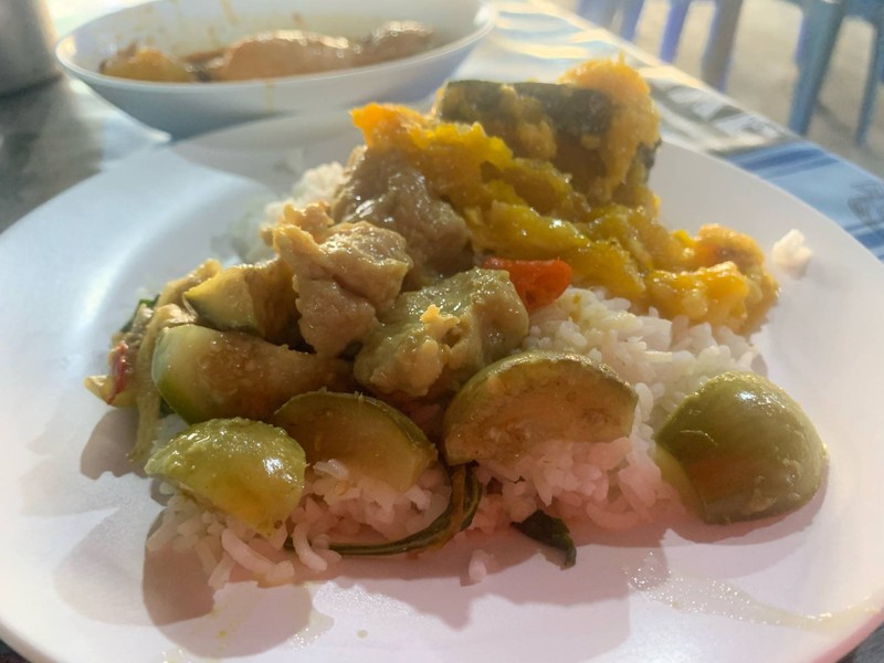 มาทำงานที่อำเภอเมืองกาญจนบุรี เช้าๆหาร้านทานได้น้อยครับ แต่ร้านข้าวแกงร้านนี้บอกเลยว่าตอบโจทย์มาก ด้วยปริมาณอาหารที่มากมาย เลือกไม่ถูก ต้ม ผัด แกง ทอด มีครบ ที่สำคัญทุกอย่างเสร็จเรียบร้อยตั้งแต่ฟ้ายังไม่สว่างดีเลย รสชาดอาหารอร่อยตามสไตล์อาหารไทย ติดหวานนิดๆ ราคาเมื่อเทียบกับปริมาณอาหารที่ได้รับถือว่าคุ้มค่าสมราคาครับ ที่จอดรถหน้าร้านเลยครับ ที่สำคัญใครอยากใส่บาตรทางร้านมีบริการจัดชุดใส่บาตรให้นะดูเพิ่มเติม