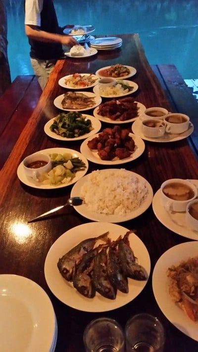 รีสอร์ทนี้จะมีคิดราคาเป็นรายหัว คือทุกคนจะได้ทานอาหารเย็นและเช้ารวมอยู่ในราคาที่พักแล้ว โดยอาหารเย็นจะเป็นบุฟเฟ่ต์อาหารไทยที่มีให้เลือกมากมายหลายอย่าง แบบว่าเยอะจริงๆแล้วก็เติมตลอด มีทั้งคาว หวาน และผลไม้ ส่วนมากกลุ่มที่ไปกันเยอะๆจะตักเป็นกับข้าวแล้วไปนั่งกินด้วยกันมากกว่า กลุ่มเราวันนั้นไป 11 คนก็เลยทำตาม น้ำพริกกะปินี่เพื่อนๆยกให้เป็นอันดับหนึ่ง ส่วนอาหารเช้าก็ใช้ได้เลย มีอเมริกันเบรคฟาสพวกไข...อ่านต่อ