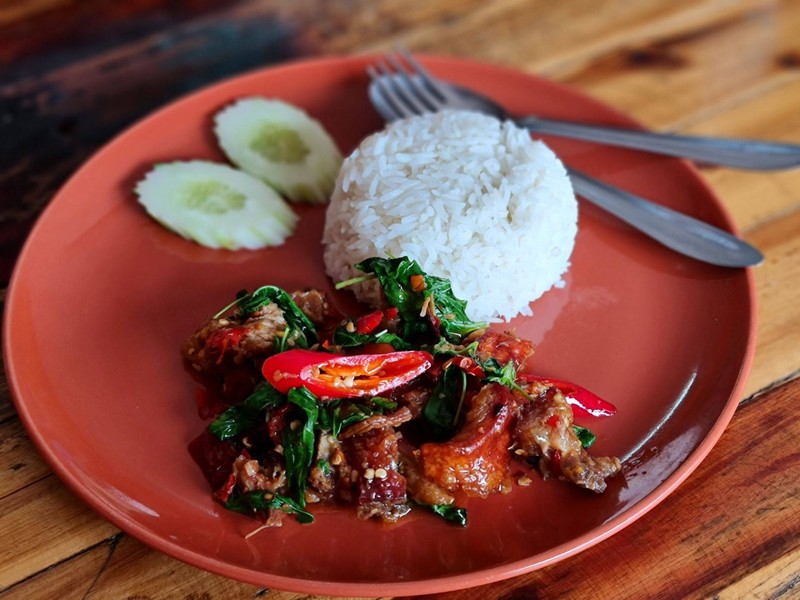 ร้านบ้านๆ อาจจะดูไม่สะอาดเท่าไรนัก แต่หมูกรอบเค้าอร่อยมากๆครับ เน้นขายผัดกระเพรา รสชาติสั่งเผ็ดน้อยเผ็ดมากได้ ออกเค็มไปนิดหน่อย หมูกรอบหนังระเบิดฟูกรอบกรวบ ตัวเนื้อนุ่ม ปริมาณพอดีอิ่ม ทานคู่กับไข่ดาวเข้ากันสุดๆดูเพิ่มเติม