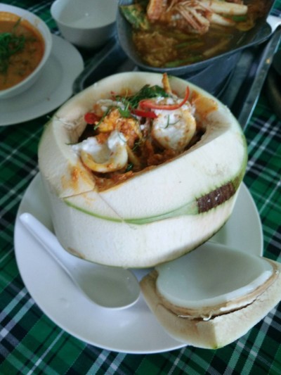เป็นอีกหนึ่งร้านที่เวลาคิดอะไรไม่ออกก้อจะไปร้านนี้ ร้านจะขับเลยพุทธมณฑลสายห้าไปหน่อยเดียว เมนูที่ชอบมากของร้านนี้คือกุ้งอบเกลือกะทะร้อน มันกุ้งตักคลุกข้าวอ้วนตัวแตก นอกจากนั้นก้อยังมีแกงส้มชะอมกุ้ง ยำมะเขือยาว ทอดมันปลากราย ห่อหมกทะล หอยจ๊อ ออส่วนกะทะร้อนดูเพิ่มเติม