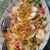 เคยเดินผ่านช่วงนึงเมื่อก่อนคนเยอะตลอด รอบนี้มาบ่ายคนน้อยเลยลองแวะ - ยำขนมจีนปลาทูหมูยอ เลือกได้ว่าจะใส่หรือไม่ใส่น้ำปลาร้า รสชาติโดยรวมถือว่าใช้ได้แต่ติดเค็มนำ - เนื้อแดดเดียว&ข้าวเหนียวนุ่ม เนื้อไม่เหนียวและแข็งออกเค็มไปหน่อยขนาดกินคู่กับข้าวเหนียว ข้าวเหนียวนุ่มสมชื่อ ทิ้งไว้นานก็ยังเหลือความนุ่มอยู่ - ไก่ทอดชุด ข. มีปีก สะโพก น่อง อย่างละ 1 ชิ้น ไก่กรอบมาก กินคู่กับหอมเจียวกรอบๆ มีแต่อีกแล...อ่านต่อ