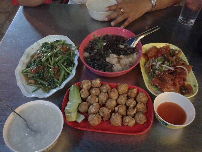 ร้านนี้เป็นร้านข้าวต้ม อยู่ ถ.ที่จะเข้า ตลาดแม่กลอง แถวนั้นจะมีร้านข้าวต้มเรียงรายกันมากมาย แต่ร้านนี้อยู่หน้า แบงค์กรุงศรี เลย สะดุดตาตรง แชมป์ช่อง7 เลยลองดู คับ จานแรก ไส้หมูพะโล้ เปื่อยดีคับ ไส้เค้าเหมือนผ่าแล้วลอกเมือก ๆ มัน ๆ ออก อร่อยใช้ได้ ไม่เหม็น ผักบุ้งไฟแดง มาตรฐาน จานนี้ เมนูแนะนำ ยำปลากรอบ อร่อยดีครับ ปลามันไม่ใช่แบบ กรอบ ๆ แห้ง ๆ เคี้ยวไปแล้ว มีเนื้อ มีหนัง ไม่แข็ง...อ่านต่อ
