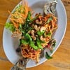วันนี้กลับมากินร้านนี้ช่วงบ่าย มากัน 2 คน ไม่มีคนนั่งสบาย จอดรถริมถนนฝั่งตรงข้าม สั่งเลย #กุ้งซอสมะขาม 150 บาท จานนี้ห้ามพลาดด้วยประการทั่งปวง กุ้ง XXL 6 ตัวทอดมา และราดซอสมะขามเปรี้ยวหวาน โรยหอมเจียว กุ้งสด แน่น เด็ดจริง ต้องสั่ง #แกงส้มปลา 200 บาท เป็นแกงส้มภาคกลาง ไม่ใช่แกงเหลิองใต้ รสชาติเข้มข้นพริกเครื่องแกง แต่ไม่จัด เนื้อปลาสด แน่น #หมึกผัดผงกะหรี่ อันนี้ผิดหวังจริง ไม่เข้มข้นผงกะหรี...อ่านต่อ