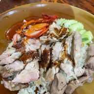 ลูกค้ารุ่นเก่าคงจำได้ดี ในร้านเดิมที่อยู่ในโรงแรมอะไรจำชื่อไม่ได้แล้ว ซึ่งทางเข้าอยู่ติดกับร้านพิธยาภัณฑ์ ตัวร้านอยู่ตรงข้ามสหไทยพลาซา ด้านหน้าในปัจจุบัน ย้ายมาอยู่ที่ใหม่กก็นานมากแล้ว ร้านใหญ่โตโอ่โถงมากขึ้น เมนูอาหารก็มีให้เลือกมากมาย ข้าวมันไก่ หมูแดง หมูกรอบ ก๋วยเตี๋ยวหมู เนื้อ ฯลฯ ในรสชาติที่ไม้ผิดหวังดูเพิ่มเติม