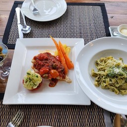 100% ของรีวิวบอกว่าร้านนี้เหมาะกับ เพื่อนฝูงร้านนี้มีพรรคพวกแนะนำว่าอาหารอร่อยราคาไม่แพง เมื่อวานโทรสอบถามว่าร้านนี้ปิดทุกวันจันทร์ช่วงนี้ปิดมา 2 อาทิตย์แล้ววันนี้เปิด เลยโทรมาจอง 2 ที่ จอดรถริมถนนหน้าร้านได้ทั้ง 2 ฝั่งร้านเป็นตึกแถวห้องเดียว ไม่มีแอร์ลูกค้าส่วนใหญ่เป็นชาวต่างชาติมีเราสองคนเป็นคนไทย สั่งอาหารอกไก่อบราดซอสมะเขือเทศ พาสต้าซอสเพสโต ทางร้านเอาโอลีฟและขนมปัง มาเสิร์ฟให้ทานเล่นก่อนอาหารหลักมาอาหารรสชาติอร่อยใช้ได้ ราคาอา...อ่านต่อ