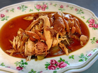 ที่บ้านเราชอบกินขาหมูกันมาก ตระเวนเสาะหาร้านอร่อยๆ แต่เจอที่ถูกใจแค่ไม่กี่ร้าน ซึ่งหนึ่งในนั้นก็คือที่นี่เลย ขาหมูแบบเนื้อหนัง อร่อยถูกปากครอบครัวเรา ที่ร้านนี้แกะเปลือกกระเทียมให้เรียบร้อย แต่ก่อนเขาให้กระเทียมเม็ดเล็ก กินกับพริกเม็ดเล็ก กินแล้วอร่อยมาก แต่ตอนนี้เปลี่ยนขนาดของกระเทียมเป็นเม็ดใหญ่หั่นครึ่ง ซึ่งอาจจะแกะง่ายกว่า อันนี้พอเข้าใจได้ ยังไงก็ยังอร่อยเหมือนเดิม ซดน้ำซุปของตุ๋นต่างๆ ท...อ่านต่อ