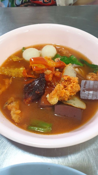 ก็....ตามมาจากวงในอีกร้าน ไปถึงหกโมงเย็น ที่นั่งว่างเยอะ แต่เหลือแค่เคาน์เตอร์เย็นตาโฟ หมูสะเต๊ะ น้ำแข็งไส นอกนั้นเก็บแล้ว สั่งบะหมี่เย็นตาโฟ บะหมี่ใช้เส้นแบบหมี่ผัดฮกเกี๊ยน ตัวน้ำซุปรสหวานนำ มีเครื่องของทอด รู้ว่ามีกุ้งชุบแป้งทอด เกี๊ยวทอด นอกนั้นไม่แน่ใจว่าคืออะไร มีปลาหมึกกรอบ ฮือก๊วย เลือด2-3ชิ้น ผักบุ้งสดดี เราปรุงน้ำส้มเพิ่ม ก็คิดว่าใช้ได้นะ แต่ก็ยังไม่เด็ดว้าวอะไรมาก ยกเว้นเครื่องของทอด...อ่านต่อ