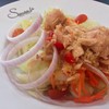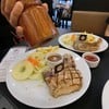สเต็กซานตาเฟ่ หลังจากไม่ได้กินนาน วันนี้เลยมาแวะกินซะหน่อย ช่วงนี้มีโปรโมชั่น สเต็กไก่ซอสแจ่ว กลับสเต็กไก่ฮาวาย เลยจัดมาซะหน่อย เพิ่มของกินเล่นเป็นเฟร้นฟราย สเต็กไก่ซอสแจ่วมีไส้กรอก หมูคุโรบูตะกับน้ำชามะนาวให้ในชุดด้วย น้ำแจ่วรสชาติไปทางหวาน ไม่เผ็ด ไก่นุ่มมาก ส่วนสเต็กไก่ฮาวายราดด้วยน้ำบาร์บีคิวอร่อยใช้ได้ ที่แตกต่างเห็นจะเป็นเพิ่มสับปะรดในจาน แล้วเราก็สั่งซอสพริกไทยดำมาเพิ่ม อร่อย กลมกล่อมดีดูเพิ่มเติม