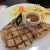 ไม่รู้จะกินอะไร เปิดเฟสบุคมา เจอ โปร 129 บาท ได้ สเต็กหมู 1 + สปาเก็ตตี้ 1 ถือว่าคุ้ม มา 2 คน จัด 2 ชุดเบย จะได้ไม่เเย่งกัน สเต็กหมู ชิ้นใหญ่มากค่ะ หมูนุ่ม แต่แอบไม่สุก เนื้อยังเเดงๆ สปาเก็ตตี้ เบค่อน ซอสครีม เลือกไม่ได้นะคะ มีเเบบเดียว รสชาติโอค่ะ สั่ง น้ำอัดลม กระป๋อง แอบเเพงไปหน่อย 39 บาท น้ำเปล่า 20 บาท โอเคค่ะดูเพิ่มเติม