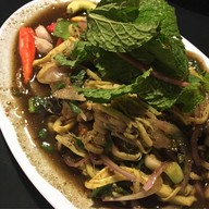 มาทานครั้งแรกก็ประทับใจเลยคะ สั่งปุ๊บ รอ 5 นาที เสริฟปั๊บ เสริฟทุกเมนูมาพร้อมกันเลย มันสุดยอดมากๆๆๆ แต่ละเมนูมาเต็มจาน น่ากินทั้งน้านนนนนน คอหมูย่าง (90-) ติดมันนิดๆ เนื้อนุ่มสุดๆๆๆ เสียดายก็แต่น้ำจิ้มแจ่ว ที่ติดหวานไปหน่อย ปีกไก่ทอดกระเทียม (90-) ทอดในกรอบและหอมกระเทียมมากๆ โรยกระเทียมมาให้เต็นจาน กรุบกรอบเคี้ยวเพลินเลยยยย ลาบหมู (80-) รสชาติกลมกล่อมมาก ข้าวผัดหมู (60-) ให้เยอะเกินราคาจริ...อ่านต่อ