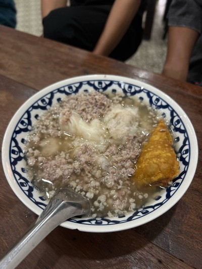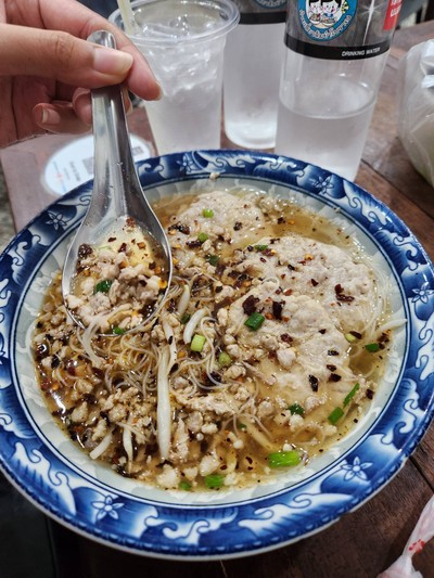 ก๋วยเตี๋ยวน้ำใสหมูล้วนแบบจัดเต็ม ทั้ง หมูสับและหมูเด้งทำเอง เด้งนุ่ม เสิร์ฟกับน้ำซุปใสหอมหวาน เคี่ยวจากกระดูกหมูจนกลมกล่อม ได้รสชาติอร่อยเบา ๆ แต่เต็มไปด้วยคุณภาพ