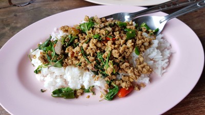 ร้านนี้ มีมานานแล้ว คนปากช่องชอบมาทานกัน. อาหารที่ขึ้นชื่อ คือ กระเพรา ส่วนไข่ดาวท่่นี่ใช้ไข่เป็ด เวลามาทอดเป็นไข่ดาวแล้วอร่อยมาก แต่วันนี้เลือกทานข้าวผัด เค็มมาก ผิดหวังเลย ส่วนอีกจานสั่ง ราดหน้ามาทาน. เมนูนี้อร่อยมากค่ะดูเพิ่มเติม