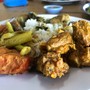 อาหารน่ากิน มีกับข้าวหลากหลาย มีผักสดและน้ำพริกไว้บริการฟรี เมื่อนั่งทานที่ร้าน แต่หากซื้อกลับจะไม่มีผักให้ ข้าวราดหมูหวานกับแกงส้มไข่ปลา หมูหวานมันไปนิดแต่อร่อยมากๆ ส่วนแกงส้มก็ให้ไข่ปลาเยอะมากค่ะ ฟักทองเชื่อม อร่อย ซื้อเป็นถุงกลับมา ถุงละ 20 บาท เชื่อมได้ดี เนื้อเหนียวนุ่มละลายในปาก อร่อยสมราคา ที่ร้านยังมีผลไม้ วุ้น และของฝากนิดๆหน่อยๆ ใหิได้เลือกซื้อกันด้วยดูเพิ่มเติม