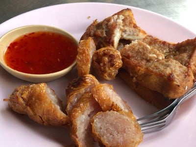 ข้าวหมูทอดไข่ดาวเจ้าเก่า ที่ยูทูบเบอร์คนดังอย่างมิ๊นท์ เคยมารีวิวไว้ จุดเด่นกับไส้กรอกหมูทำเองที่มีรสหวานเล็กน้อย จิ้มกับน้ำจิ้มหวานเผ็ดเข้ากัน แต่ไส้กรอกควรกินตอนร้อนๆ เพราะเย็นแล้วเหนียว ข้าวหมูทอดไข่ดาว หมูไม่เค็มจัดทำให้กินได้ง่ายไม่เลี่ยนดูเพิ่มเติม
