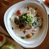 นี่เป็นวันธรรมดาค่ะขอย้ำ โต๊ะนั่งถูกจองล่วงหน้าเกือบทุกโต๊ะ โชคดีที่เรามาเร็วกว่าคนอื่นแป๊บเดียวจริงๆ ^^ เพราะสวยสวน อากาศดี สะอาด บริการเยี่ยม อาหารอร่อย Confirmed!! เราสั่งเมนูเป็ดอบเมล็ดกาแฟ ที่เป็นเมนูแนะนำ เสริฟพร้อมผักสด 1 ตระกร้า เป็ดนุ่มพอดีไม่เปื่อยยุ่ย หอมกลิ่นกาแฟค่ะ 150฿ ส่วนผัดผักซาโยเต้จานเบ้อเร่อแค่ 60฿ ผักอ่อนไม่แข็ง ถ้วยสุดท้ายคือแกงส้มปลาเทร้า ถ้วยนี้เร่ิดดดสุดๆๆ แกงส้มจั...อ่านต่อ