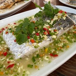 บรรยากาศร่มรื่น ริมคลอง ใต้ร่มไม้ ใต้หลังคายังปกคลุมด้วยพัดลม เลยเย็นสบาย แมลงวันไม่ค่อยมากวน เมนูโปรดคือปลากุเลาทอดซีอิ๊ว ไม่ค่อยได้พบบ่อยๆ กรอบนอกนุ่มใน ราดซีอิ๊วบางๆ รสกลมกล่อม กินได้ทุกชิ้นส่วน แกงคั่วใบรา เผ็ดร้อน ใบราเต็มชามสะใจ หนักกะทิไปนิดนึง แต่เครื่องแกงหอมดี ผักกรูด ผัดได้ดีคงความกรอบ เสียแต่น้ำท่วมไปนิด ผักน้อยไปหน่อย และราดกระเทียมสำเร็จรูปมา กรรเชียงปู ไม่แย่ ด้วยอารมณ์อยากกินปูแ...อ่านต่อ