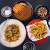 มาชิมเพราะหมานฟรายส์ มะเขือยาวชุบแป้งทอดก็กรอบดี คลุกน้ำหวาน ๆ กลิ่นอะไรไม่รู้ไม่ค่อยคุ้น ก็กินได้แต่แอบเลี่ยน บะหมี่เกี๊ยวกุ้งน้ำซุปก็จืด ๆ แต่เกี๊ยวและบะหมี่ดี บะหมี่หมานหมูสามชั้นก็เผ็ด ๆ หวาน ๆ น้ำซถปที่สั่งเพิ่มคู่กิมจิอร่อยดี มีพนักงานเสิร์ฟให้ด้วย ราคาไม่แรงดูเพิ่มเติม