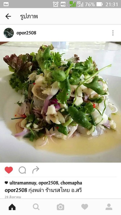 100% ของรีวิวบอกว่าร้านนี้เหมาะกับ เพื่อนฝูงร้านรสไทย ขับมาทางโรงพยาบาลสวี ก่อนถึงรพ จะมีซอบเล็กๆ ด้านซ้ายมือ เลี้ยวเข้าไป ด้านซ้ายเป็นบ้านคน ด้านขวาเป็นรั้วโรงพยาบาล ตรงไปประมาณ50เมตรมีทางแยกให้เลี้ยวซ้ายจะเจอตัวร้าน แม่ครัวเป็นคุณป้าที่น่ารัก อยู่เป็นบ้านตัวเองแล้วทำเป็นร้านอาหารด้วย จะมีน้องหมา1ตัว เห่าเก่งเกินแต่กลัวคนมาก ไม่ต้องกลัว วิ่งเข้าหามัน มันจะถอยกรูดแทบไม่ทัน หน้าร้านมีที่จอดรถ มีหลังคาบัง ได้ประมาณสามคน ในร้านจุคนได้ประม...อ่านต่อ