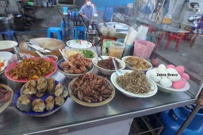 3.5 ดาว กินซีฟู้ดหลายมื้อ ขอสลับเป็นข้าวกล่องราคาประหยัดบ้าง เจอร้านข้าวต้มพอเพียงอยู่ซอยหัวหิน 55/1 ในซอยจะเป็นตลาดนัดเย็น ร้านจะเริ่มเปิดกันประมาณ 17.00 น. มีร้านรถเข็นมากมายให้เลือกชิม สั่งอาหารกันเลย 1. ข้าวผัดไข่ (30) - คนกินมังสวิรัติก็สั่งข้าวผัดไข่ได้นะ รสชาติใช้ได้ 2. ข้าวกะเพราหมูกรอบ (40) - เผ็ดไม่มาก หมูกรอบกรอบจริง 3. ข้าวกะเพราหมูสับไข่ดาว (40) - สั่งผัดแบบไม่ใส่พริกก็จัดมาตามส...อ่านต่อ