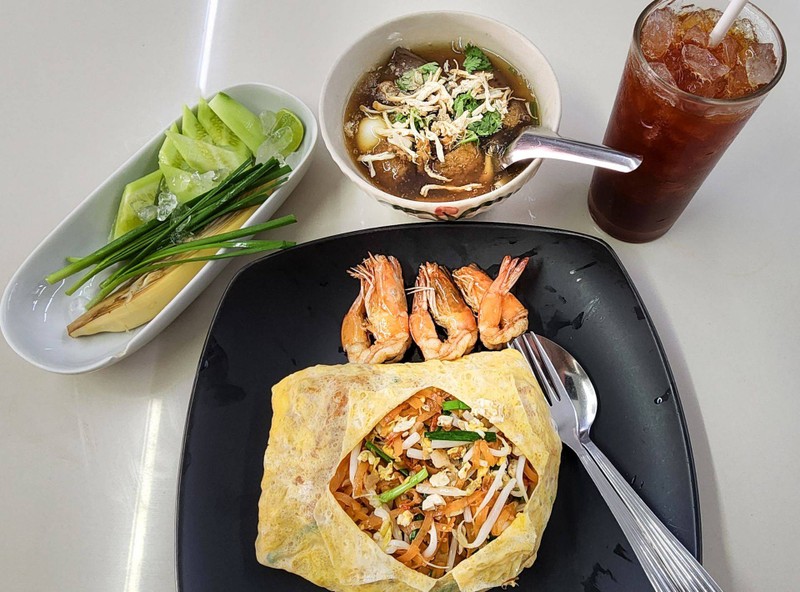 ผัดไทยเส้นนุ่มชุ่มด้วยเครื่องปรุงอร่อยตามสูตรของเจ๊ฮวงเค้า ตามคำแนะนำของคนพื้นที่ ว่าที่นี่เด็ดจริง ซึ่งก็สมตามคำเล่าลือ ด้วยเส้นที่ชุ่มๆ ไม่เละ และไม่แห้งเกินไป เครื่องก็เยอะกินจนอิ่มกันแหล่ะ กระเพาะปลาของทางร้านก็อร่อยด้วยน้ำซุป เรียกได้ว่าเป็นอีกร้านที่อาหารอร่อย รสชาติคงที่ คุณภาพดี ราคาก็เหมาะสม แถมเสริฟเร็วด้วยดูเพิ่มเติม