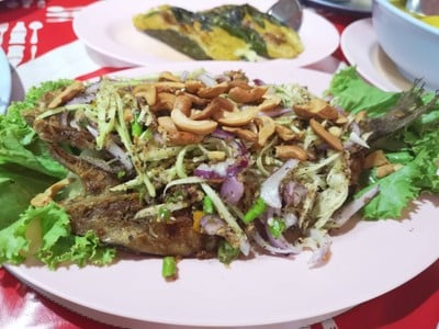 ร้านนี้เป็นร้านที่คนเยอะ แต่ร้านกว้างประมาณ 3 ห้อง เลยพอจะหาที่ว่างได้อยู่ อาหารออกเร็วมาก แบบไปหิวๆก็พร้อมกินได้เลย ที่สำคัญราคาอาหารไม่แพง เริ่มต้นจานละ 60-70บาท ไปกัน10คน สั่งกับข้าวน่าจะเป็น10กว่าอย่าง ข้าว2โถ น้ำกับน้ำแข็ง ราคา 1,090 บาท ทุกคนตกใจในราคาและประทับใจอาหารค่ะดูเพิ่มเติม