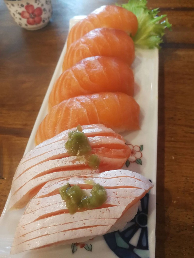 มาลองครั้งแรก จอดรถริมถนน หน้าร้าน สั่งหลายอย่างเท่าที่จำได้ ซูชิแซลมอลกับท้องแซลมอน นุ่ม มัน ข้าวเปรี้ยวไปนิดนึง เนื้อย่าง หอม นุ่ม ไม่เหนียวเกินไป ราเมนทงคตซึ หอม มัน เส้นนุุ่ม หมูนุ่ม อร่อย ซดน้ำเกลี้ยงเลย เทมปุระโรล มั้ง จำชื่อไม่ได้ อร่อยกรอบ หวาน ต้องกินอย่างอื่นสลับไปด้วย เพราะเลี่ยนไป แต่ชอบอร่อยดี ชาข้าวคั่วญี่ปุ่น จำชื่อไม่ได้ อร่อยมาก ชอบ หอม เติมน้ำไปปหลายรอบมากๆๆๆ ร้านห้องแอร์เย็...อ่านต่อ
