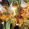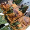 เมนูหากินยากมีแค่ในบางพื้นที่หรือในบางจังหวัดเท่านั้น มันคือห่อหมกที่ปิ้งด้วยใบตอง ที่บ้านจะเรียกว่าปิ้งงบ แต่ถ้าที่อื่นอาจจะเรียกว่าห่อหมกปิ้งประมาณนั้น มีหลากหลายไส้เวลาจะเป็นไส้ปูไส้ไข่แมงดาแล้วแต่ชอบเลยครับเนื้อแน่นดีไส้น้อยไปหน่อยแต่ก็เข้าใจว่าวัตถุดิบมันแพงรสชาติใช้ได้เลยครับถือว่า ได้รำลึกความหลังครั้งตอนเป็นเด็กกินบ่อยอร่อยดีหากินยากมาแล้วอยากแนะนำให้ชิมกันดูเพิ่มเติม