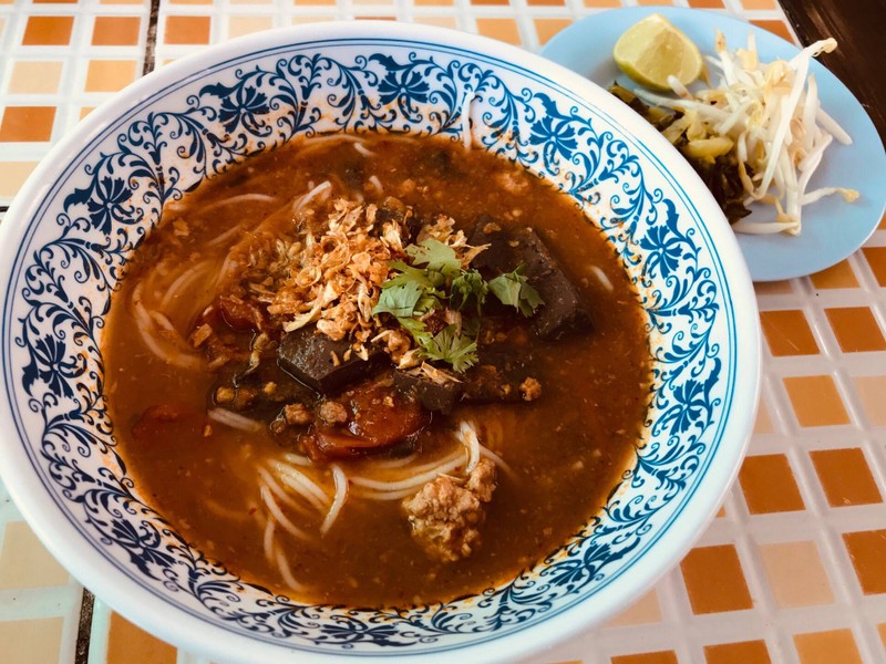 ร้านอยู่ในเขตคูเมือง เข้ามาในรั้วบ้าน มีทางเข้าออก 2 ทาง เลี้ยวรถเข้ามาจอดได้หลายคัน มีข้าวซอย น้ำเงี้ยว ก๋วยเตี๋ยว น้ำดื่มบริการตัวเอง ช่วงเที่ยงคนเข้ามาตลอด อาจจะต้องรอโต๊ะบ้าง ข้าวซอยไก่ 40฿ น้ำแกงมาแบบขลุกขลิก แต่รสเข้มข้น เส้นแบนหนาๆ ไก่นุ่มเปื่อย เพิ่มพริกคั่วได้อีกนิด กำลังดีเลย ขนมจีนน้ำเงี้ยว 25฿ ชามไม่ใหญ่มากนัก รสค่อนข้างอ่อน เหมาะกับเป็นจานเสริมดูเพิ่มเติม