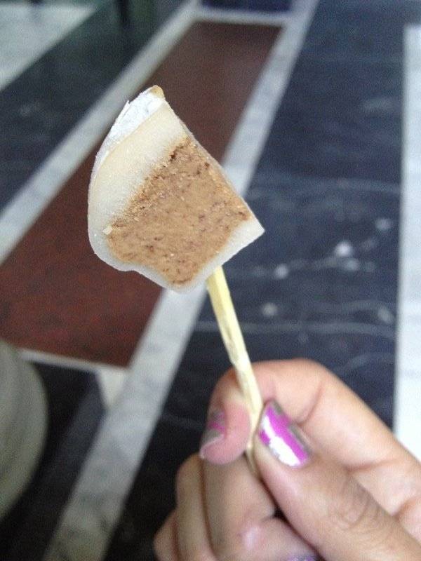 ขนมโมจิร้านนี้ เป็นเหมือนโมจิไส้ไอติม แป้งไม่ค่อยหนามาก มีรสชาติให้เลือกเยอะ ที่ไปทาน เลือกรสช๊อคโกแลตกับโยเกิร์ต (ไม่ได้มีความเข้ากันเลย555) รสชาติโมจิอร่อยดี แต่สองรสที่เลือกไม่ค่อยเข้ากัน เลยแปลกๆหน่อยดูเพิ่มเติม