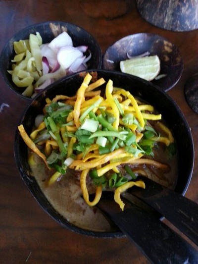 ข้าวซอยอร่อยค่ะ น้ำเข้มข้น ราคาเบาๆ จุดเด่นร้านนี้คือมาในกะลามะพร้าว ให้ความรู้สึก environmental friendly ค่ะ บรรยากาศโอเคค่ะ มาหน้าหนาวก็จะเย็นๆหน่อย ร้านไม่มีกำแพงค่ะ open air แต่มีหลังคานะคะ 555 อร่อยค่ะ พนักงานงงหน่อยๆแต่พอรู้เรื่อง น้ำมะพร้าวลูกอร่อย หมูสะเต๊ะก็อร่อยค่ะดูเพิ่มเติม