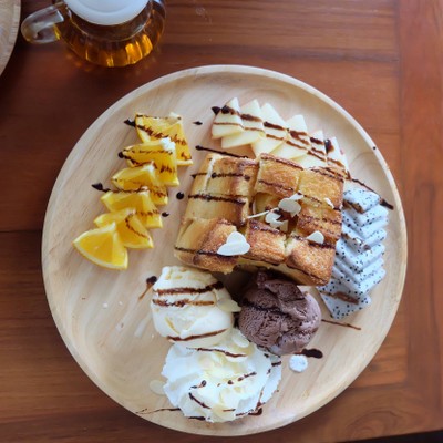 ย่างก้าวแรกที่เข้าไปในร้าน คือ คร่าคร่ำไปด้วยลูกค้าจำนวนมาก เรียกได้ว่าปริมาณโต๊ะอาหารไม่เพียงพอต่อการรองรับลูกค้าเลยทีเดียว เพราะเป็นแหล่งรวมอาหารแบบครบวงจร ทั้งคาว หวาน พร้อมเครื่องดื่ม วันนี้ได้ลองของหวานเป็นเมนูบิงซูเมล่อน (ครั้งแรกกับเมนูนี้) ถือว่าปริมาณคุ้มค่าคุ้มราคา รสชาติให้ ⭐️⭐️⭐️⭐️ ส่วนเมนูฮันนี่โทสนั่นยังไม่ถูกใจ เพราะขนมปังข้างในไม่กรอบ ไอศครีมรสชาติแปลกๆ เอาไป ⭐️⭐️⭐️ดูเพิ่มเติม