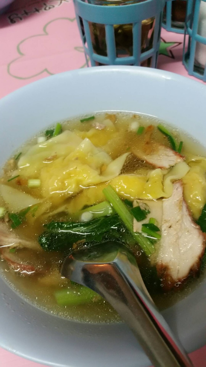 เส้นบะหมี่เหนียวนุ่ม หมูแดง นุ่มเคี้ยวง่าย น้ำซุปหวานหอม เกี้ยวกุ้งแบบธรรมดา ชิ้นเท่าฝ่ามือ 4 ชิ้น 50 บาท เกี้ยวหมู 6 ชิ้น 40 บาท เฉยๆสั่งเกี้ยวกุ้ง ดีกว่า มีบะหมี่ปู เกี้ยวปูด้วย คนเยอะมาก รอนานต้องใจเย็นๆดูเพิ่มเติม