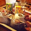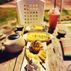 ร้านสวย สไตล์ญี่ปุ่น(รึป่าวนะ...อันนี้เราคิดเอง) >///< ร้านมี2โซน @ ด้านในแต่งร้านสวยติดแอร์ เหมาะสำหรัยไปนั่งชิวๆ ^^ @ ด้านนอก มีส่วนของระเบียงและ ลานหญ้า มีโต๊ะเล็กวางเป็นโซนส่วนตัว ไม่แน่นจนอึดอัด @_@ เหมาะสำหรับไปนั่งเม้ากันหลายๆคน ^O^ ###เป็นร้านที่ค่อนข้างบริการตัวเอง จ่ายก่อนมานั่งกิน### เค้กอร่อยมากกโดยเฉพาะ เครปมะม่วง น้ำอร่อยไม่หวานมาก เมนูแนะนำคือ กล้วยหอมสตรอเบอรรี่ปั่น ^^ สุดท้าย...อ่านต่อ
