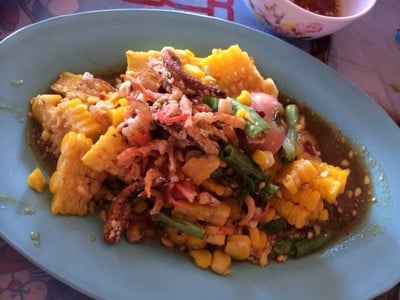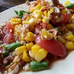 ร้านส้มตำที่เปิดมานาน ที่ขึ้นชื่อคือไก่ทอด และข้าวเหนียวที่ใส่กากแป้งไก่ทอดมาด้วย อร่อยดี ตำผลไม้รวม ผลไม้หวานอร่อยทุกอย่าง รสชาติหวานนำเปรี้ยวตาม ใส่ปลากรอบมาให้ด้วย เพิ่มความเค็มๆกรอบๆ เข้ากันได้ดี ลาบหมู อันนี้คือสั่งทุกรอบ อาจจะเผ็ดไปนิด กินกับข้าวเหนียวกากอร่อยดีค่ะ คอหมูย่าง เนื้อนุ่มดี ส่วนมันแล้วแต่รอบ บางรอบเยอะบางรอบน้อย น้ำจิ้มแจ่ว รสชาติออกเผ็ดเค็ม ตับหวาน ตัวตับ...อ่านต่อ