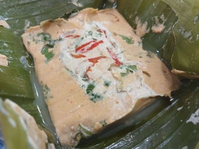 ...ห่อหมกแม่คุณม้าอรนภา (เจริญรัถ) มีกระแสอยู่ช่วงหนึ่งพูดถึง ความอร่อยของห่อหมกคุณแม่ พึ่งมารู้ทีหลังว่าอยู่ใกล้บ้านแค่วงเวียนใหญ่นี่เอง รู้แล้ววันรุ่งขึ้นสั่งมาลองทันที ...ห่อหมกปลาช่อน ห่อละ 50 บาทรสชาติอร่อยจริงๆอย่างที่แนะนำ เนื้อสัมผัสเนียนนุ่มหอมมันกะทิ ไม่มีกลิ่นคาวปลา ไม่มีก้างมากวนใจ ผักมีสามแบบ ผักกะหล่ำปลี, ใบยอ, ใบโหระพา ห่อเล็กไปหน่อยตักแปปๆหมด แต่ว่าของอร่อยชนะทุกสิ่งอย่าง 🙂...อ่านต่อ