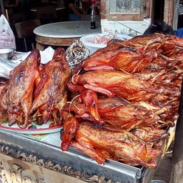 มาเที่ยวตลาดสามชุกร้อยปี แวะมาซื้อร้านต่าเฉิดเป็ดย่างเจ้าดังในตลาด ที่ร้านมีทั้งเป็ดย่าง เป็ดพะโล้ เราสั่งเป็ดย่างครึ่งตัว ราคา 190 บาทค่ะ เอากลับมาทานที่บ้าน เนื้อเป็ดนุ่มไม่เหนียว หนังอร่อย น้ำจิ้มรสชาติดี ใครมาเที่ยวที่นี่แนะนำให้ลองเลยค่ะดูเพิ่มเติม