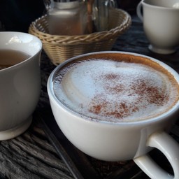 มาเดินหาอาหารเช้าย่านวัดศรีนวล เดินมาเจอร้านกาแฟน่ารักตรงหัวมุมถนนศรีนวล ตบแต่งด้วยโต๊ะ เก้าอี้ไม้ นั่งหน้าร้านก็สบายดี สั่งคาปูชิโน่ร้อนมาดื่ม รสชาติดีมาก เจ้าของร้านก็น่ารักมาก สังเกตลูกค้าจะเป็นวัยกลางคนขึ้นไป เป็นส่วนมาก เป็นกันเองกับลูกค้าค่ะ คาปูชิโน่ร้อน 45 บาทดูเพิ่มเติม