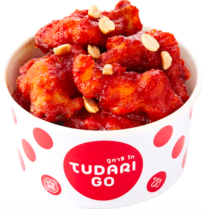 ไก่และแป้งต๊อกบกกิทอดคลุกซอสเข้มข้นรสเผ็ดหวาน