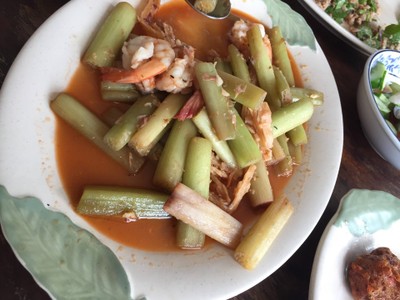 มีโอกาสมาทำบุญไม่รู้จะกินอะไร ผ่านมาเลยแวะมาชิมอาหารไทยบ้านๆ โบราณๆ ชื่อแปลกๆเช่น แสร้งว่า ซึ่งเกิดมาไมาเคยเห็นเลยว่าคืออะไร? และแล้วก่ะไม่ผิดหวังนะครับ คล้ายยำหอยดอง แต่ใส่กุ้งแทนหอยอร่อยรสชาติเยี่ยม ผัดสายบัวใส่กุ้งก่ะไม่ธรรมดา ที่สำคัญ กระดูกหมูอ่อนสับผัดเผ็ด ทานคู่กระเทียมโทน กับ ใบยี่หรา รสชาติสุดยอดติดใจเลยดูเพิ่มเติม