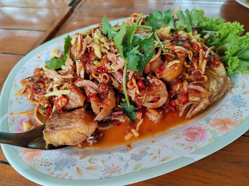 ผมมามาร้านนี้สองครั้งแล้วครับร้านอยู่ชานเมืองหน่อย เข้าซอยลึกลับ แต่เข้าไปงงเลย คนเยอะมาก เว้ยอร่อยขนาดนั้นเลยหรอว่ะคิดในใจ ลองสั่งเมนูยอดนิยม 1:ส้มตำทอด ทอดเส้นมะละกอ แครอท กรอบมาเลยมีน้ำราดมาด้วยเหมือนน้ำตำไทยออกหวานๆแปลกดี 2:ยำเห็ดเข็มทอดกรอด อันนี้คล้ายๆกัน 3:ปีกไก้ทอดยกครก มาเสริฟเลยอันนี้อร่อยดี 4:ส้มตำๆต่างๆก็รสชาติกลางๆครับไม่เป็ดไม่จืดเกินไปรวมๆก็อร่อยดี 5:ปลาทอดมีหลายสูตรจำไม่ได้วันน...อ่านต่อ