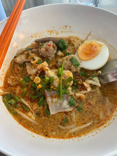 ตามรีวิวมากินที่ร้าน การเดินทางตามอากู๋ พาเลี้ยวไปมาเข้าซอยเล็กซอยน้อย สักพักมาถึงร้านจนได้ ที่จอดรถหน้าร้านได้ประมาณ 5 คัน และ ข้างๆ ร้านได้อีก 6 คัน จังหวะดีไปถึงได้จอดหน้าร้าน ไม่ต้องจอดริมทาง หาโต๊ะนั่งได้แล้ว สักพักพนักงานมาแนะนำรายการต่างๆ อธิบายแบบไม่รีบถึงแม้คนจะเยอะ เลยสั่งเย็นตาโฟโต้คลื่น พิเศษ และบะหมี่ต้มยำแห้ง ขอน้ำซุปแยกถ้วยได้ เพิ่มเกี้ยวกุ้ง ก็คิดอีก 10 บ. แล้วสั่งลูกชิ้นกุ้ง...อ่านต่อ