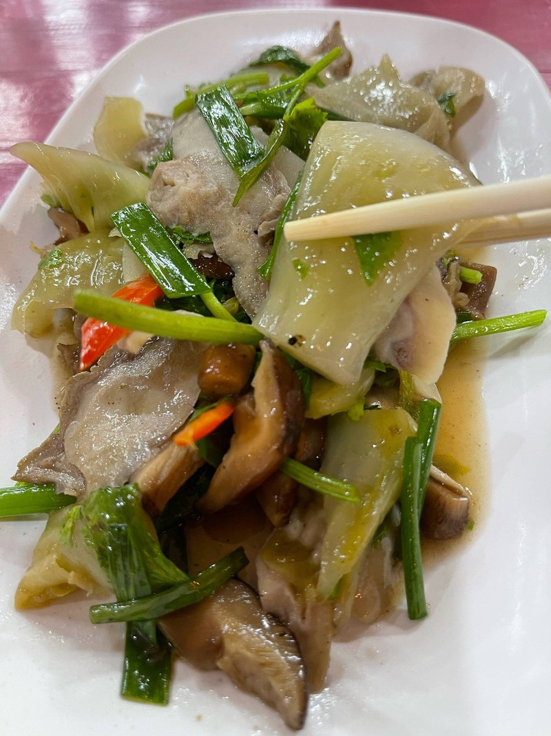 ร้านตั้งอยู่เส้นถนนมหิดลขามุ่งหน้าสนามบินเชียงใหม่ หรืออยูฝั่งตรงข้ามกับปั๊มน้ำมัน ปตท.ถนนมหิดล มีป้ายบอกร้านให้เห็นชัดเจน ที่ร้านมีทั้งโซนopen air และโซนห้องแอร์ เราเลือกนั่งโซนOpenair ช่วงหน้าร้าน ส่วนเมนูที่มาลองชิมอย่างผัดผักบุ้งไฟแดง ผักกรอบดีแต่รสชาติออกเผ็ด เนื้อปูผัดผงกะหรี่อันนี้ถือว่าโอเคมีเนื้อปูมาพอสมควรกระเพาะหมูผัดเกี๋ยมฉ่ายทำออกมาได้ดี ส่วนราคา ออกกลางๆ ส่วนทีาจอดรถมีที่ข้างร้านดูเพิ่มเติม