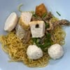 ยามเที่ยงของวันนี้ เปนวันที่อากาศร้อนอบอ้าวด้วยพายุใหญ่กำลังคืนคลานเข้ามา จึงได้พบว่ามีร้านก๋วยเตี๋ยวที่น่าลิ้มลอง เมนูบะหมี่แห้งคือของประเดิมที่เริ่มต้นความอร่อย เส้นบะหมี่สีไข่เปนสารตั้งต้นที่เข้มข้นจนจับฟัน เกี๊ยวปลานั้นหอมน้ำมันงา ลูกชิ้นกุ้งหอมกลิ่นทอดกรอบ หื้อก้วยนิ่มนวลยวนใจ หยังปลาใส่มาให้ทุกชามแต่ทว่าแข็งไปนิด น้ำซุปรสชาติจืดมีกลิ่นหอมระเรื่อ ๆ เปนเอกลักษณ์ ดังนี้.ดูเพิ่มเติม
