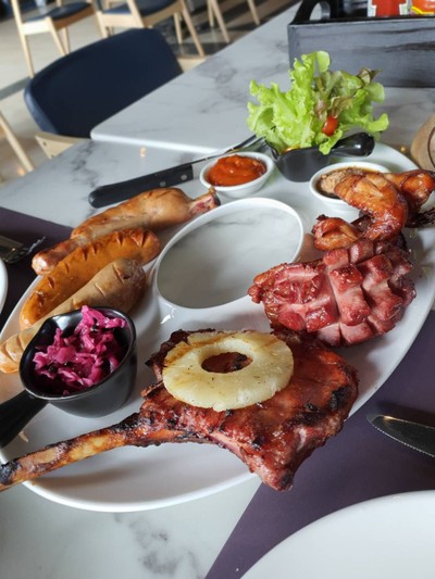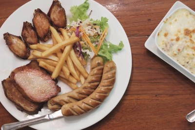 อร่อยมาก มาตามรีวิวคนอื่น เห็นมีแต่คนชม โทรมาจองก่อนแล้วขับมาจากที่พักแป๊บเดียว มาแล้วงงเล็กน้อยที่ชื่อร้านเป็นคนละชื่อกับที่เขียนใน wongnai อาหารอร่อยทุกอย่างจริงๆ ข้าวผัดหมู จานรวม (ไส้กรอก ไก่อบ เฟรนฟราย แฮมสันนอก) เนื้ออสเตรเลียจิ้มแจ่ว ราคาพอเหมาะ บริการไวดี ถ้าพนักงานยิ้มอีกนิดจะเพอร์เฟคเลย แต่บริการไม่ได้แย่นะดูเพิ่มเติม