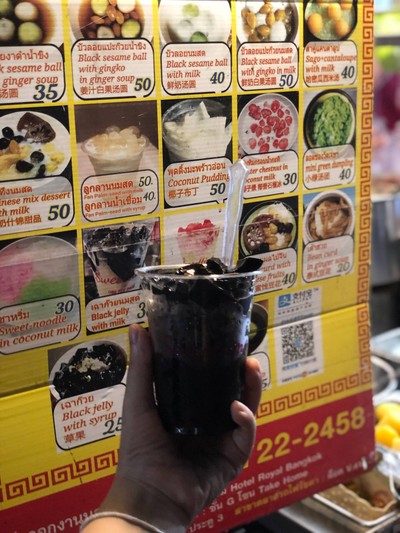 มีขนมให้เลือกหลากหลาย ทั้งร้อนและเย็น ราคาไม่แพง แต่อาจจะต้องรอโต๊ะนั่งบ้าง เพราะร้านอยู่ริมถนน แต่มาประจำ ไม่เคยรอนาน มีน้ำชาให้ด้วย มีน้ำตาลทรายแดงตั้งที่โต๊ะ สำหรับคนที่ชอบหวานๆ เมนูประจำที่กินร้านนี้ จะเป็นเฉาก๊วยดูเพิ่มเติม