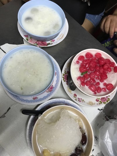 17/5/61 ร้อนมาก หาอะไรเย็นๆทานค่ะ จะได้มีแรงเดินลุยทานร้านต่อไป 😁 หน้าร้านคนเยอะมาก มีแต่คนมุงซะงั๊น สบตาแม่ค้าก็สั่งได้เลยค่ะ 🍧 ทับทิมกรอบ 30 ไม่หวานมาก เย็นชื่นใจดีค่ะ 🍧 บัวลอยนมสด 40 บัวลอย 4 ลูก นมสดไม่มัน น่าจะไม่ใช่ไม่ใช่นมกระป๋อง หรือไม่ก็รสหวานกลบความมัน ถ้าอยากได้ความมันอาจต้องสั่งแบบร้อนค่ะดูเพิ่มเติม