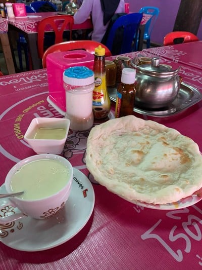 #Wongnai2024 ร้านอาหารเช้าที่ดังจากยูทูปเบอร์เกาหลีมาถ่าย ร้านเปิดเช้า สายๆ9โมงก็ปิดแล้ว ไปตั้งแต่7โมงกว่า คนเยอะมาก ร้านไม่จัดคิวให้ ต้องแย่งที่นั่งกันเอง โดนแซวคิวอีก เมนูมีไม่หลากหลาย แกงถั่วและนมแพ้หมด เลยได้กินแค่ไข่,โรตี,กับนมสด อร่อยสุดคือโรตี เป็นแป้งนุ่มๆเหนียวๆ กินคู่กับไข่ลวกหรือไข่ดาวแทน สรุปกินไม่อิ่ม ต้องไปต่อร้านโจ๊กอีกทีดูเพิ่มเติม